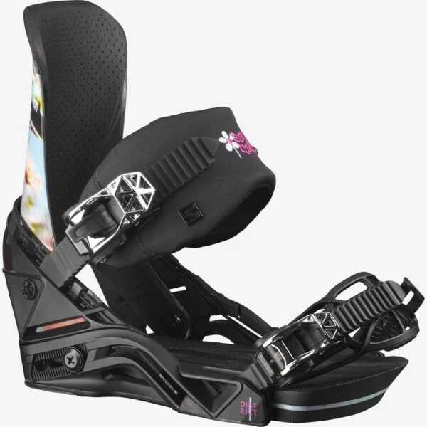 הדיסטריקט של סלומון מיועד לגלישת פריסטייל ולביצועים חסרי פשרות- על כל ההרובמיוחד בקפיצות, ריילים וכל מה שיש לפארק להציע. הביינד מעוצב בטכנולוגיית ShadowFit להתאמה לנעל באופן מדויק ובלתי מורגש, ובשילוב מנגנון Kevlar Quickwire המעניק תחושת תמיכה מקסימלית ומעבר קל בין תנועות. בעל עיצוב א-סימטרי לנוחות מוגברת ולהתאמה אישית. מבנה הקשת האחורית הדינמי – יגרום לכל גולש תחושת חיבור עם הקרש ותנועה רציפה ונעימה בכל חלק בהר.