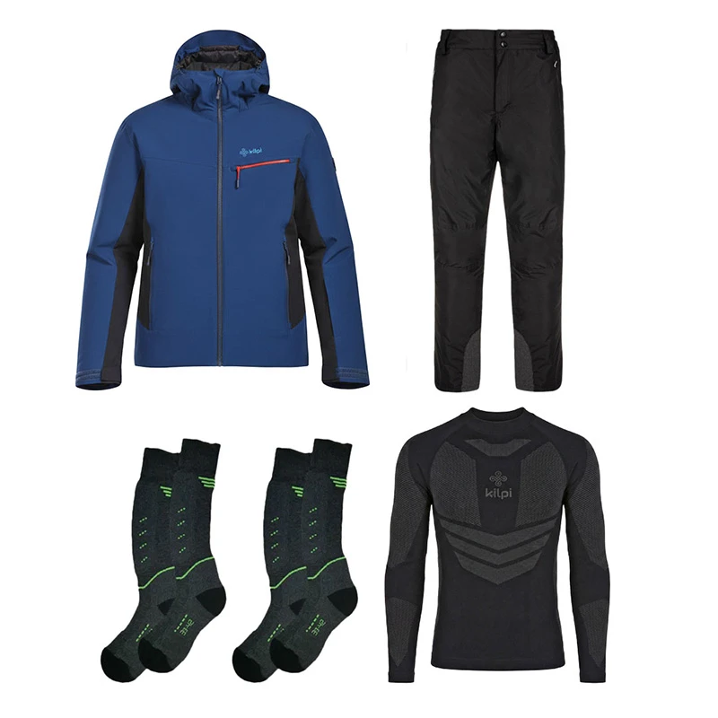 חבילה הכוללת מעיל גלישה, מכנס גלישה וחולצה תרמית של חברת קילפי ו-2 זוגות גרביים של חברת שוגר מאונטן!