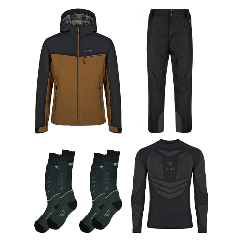 חבילה הכוללת מעיל גלישה, מכנס גלישה וחולצה תרמית של חברת קילפי ו-2 זוגות גרביים של חברת שוגר מאונטן!